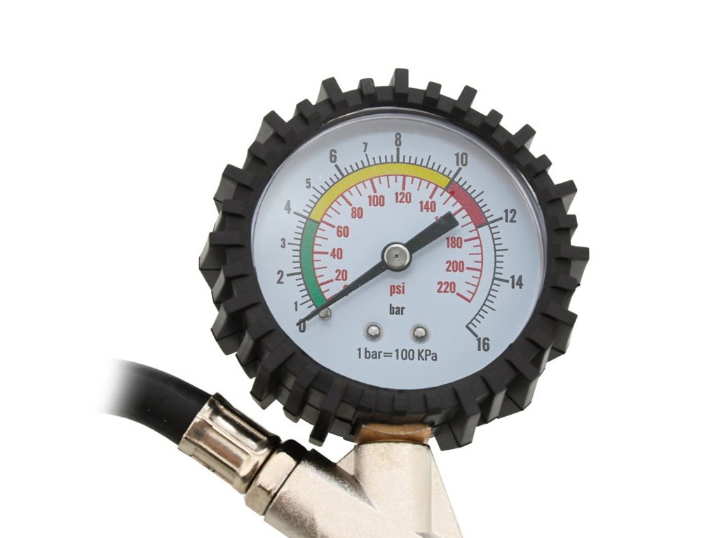 Manometer má stupnicu až do 225 psy (16 Bar).
